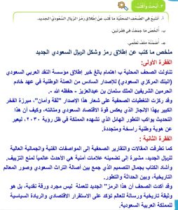 الفقرة الأولى: تناولت الصحف المحلية بـ اهتمام بالغ خبر إطلاق مؤسسة النقد العربي السعودي (البنك المركزي السعودي) للإصدار السادس من العملة الوطنية في عهد خادم الحرمين الشريفين الملك سلمان بن عبدالعزيز – حفظه الله -.